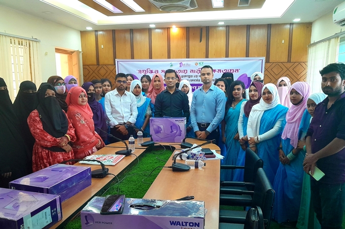 শেরপুর জেলার নালিতাবাড়ী উপজেলায় 'হার পাওয়ার প্রকল্প'-এর ২য় পর্যায়ের প্রশিক্ষণার্থীদের মাঝে ল্যাপটপ বিতরণ অনুষ্ঠান।